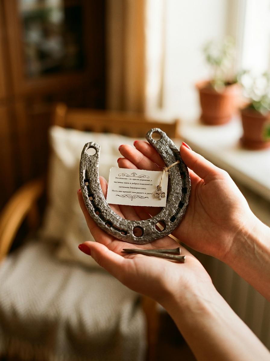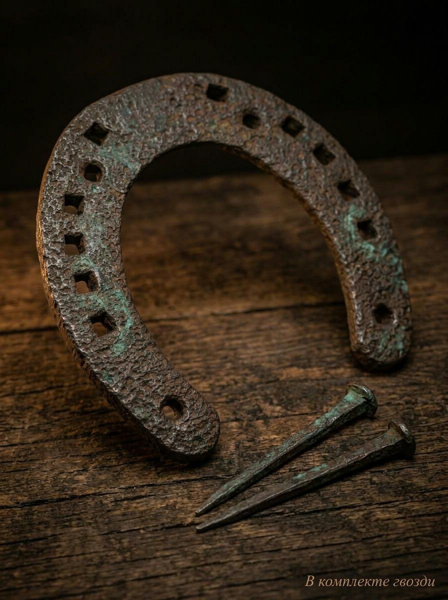 Уникальная настоящая хоженная подкова на удачу абсолютно случайная но обязательно побывавшая в использовании на копытах у лошадки это обязательное отличие всех наших подков которые мы продаем У нас каждая подкова – единственная в своём роде и обладает мощной энергетикой, переданной от скакуна. Этот сувенир станет прекрасным подарком на Новый год, новоселье, день рождения, юбилей, свадьбу или рождение ребёнка. Традиционный оберег амулет который дарят тем, кому желают счастья, удачи и процветания. Наши подковы – настоящие, снятые с лошадиных копыт, тщательно очищенные и обработанные для длительного использования в качестве сувенира талисмана или оберега. Все они разные – вы получите эксклюзивную подкову ту которую для вас подобрала сама судьба. Их способность привлекать удачу проверена неоднократно многие отмечают, что после получения такого подарка проблемы неожиданно решаются мечты и желания исполняются материализуются. Размеры: длина – 14–19 см ширина – 12–16 см. Материал – сталь. В комплекте с подковой идут два аутентичных гвоздя которыми крепят подкову к копыту лошадки. Такие гвозди хорошо подойдут для крепления подковы к деревянной основе - имейте это ввиду когда соберетесь закрепить подкову у себя дома. Если у вас бетонное основание просверлите сначала два отверстия по разметке в бетоне и вбейте туда два деревянных чопика. В эти чопики смело прибивайте подкову гвоздями из комплекта