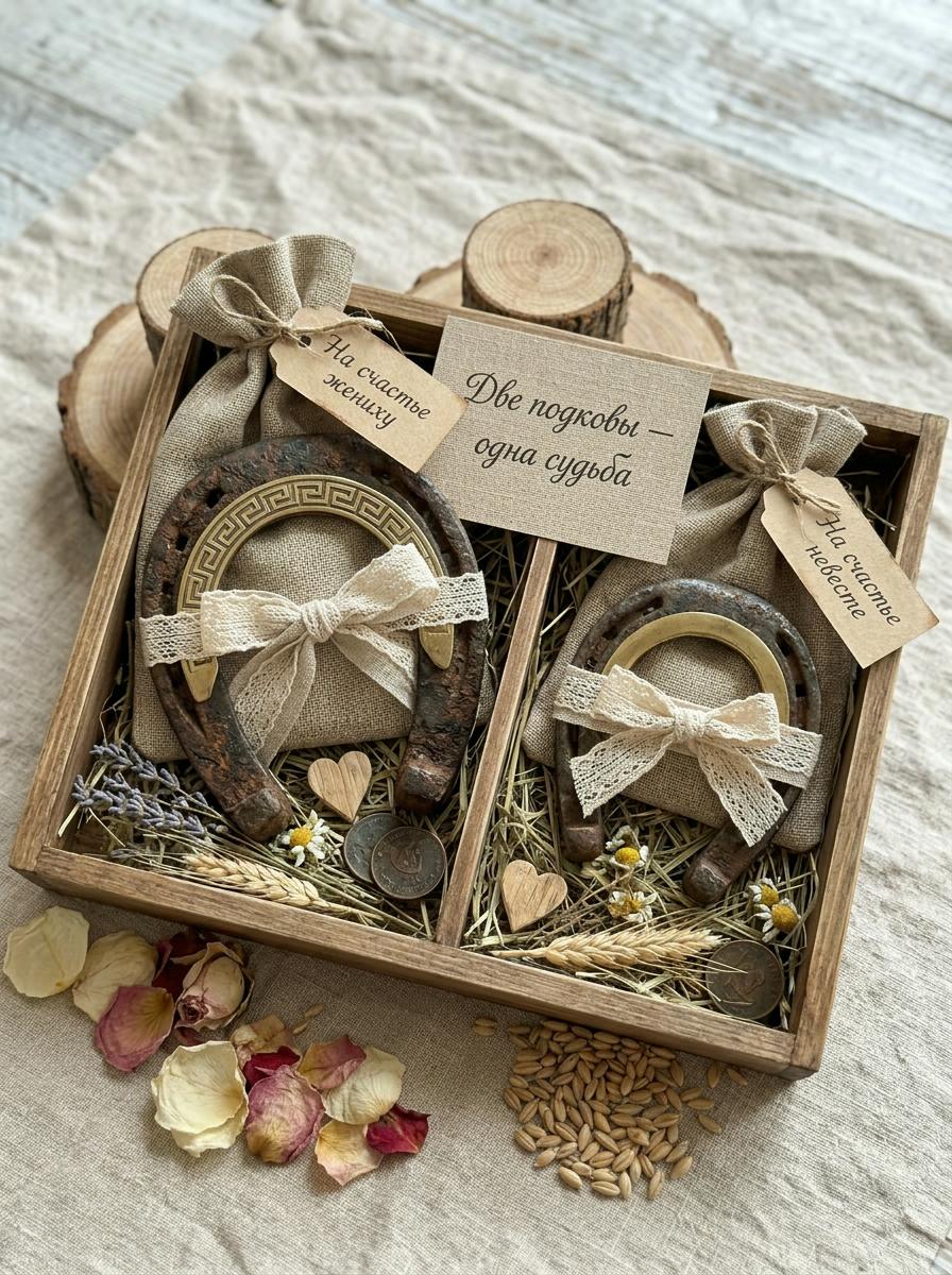 Две подковы «Жениху и невесте» + мешочки + пожелания