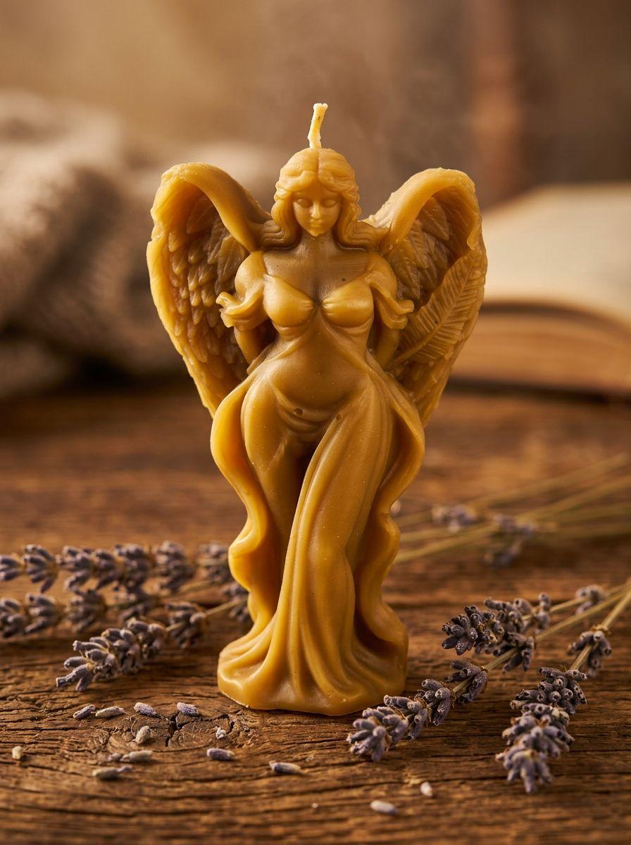 Женская фигура с большими крыльями, выполненная из натуральной вощины. 🕯️ Натуральный воск 🪔 Ручная работа, каждая уникальна 👼 Проработаны крылья, лицо, фигура 🌿 В комплекте — веточка лаванды Горит мягко, пахнет мёдом. Оберегает, вдохновляет, согревает. Идеально: для дома, как подарок женщине, в интерьер, для медитаций.