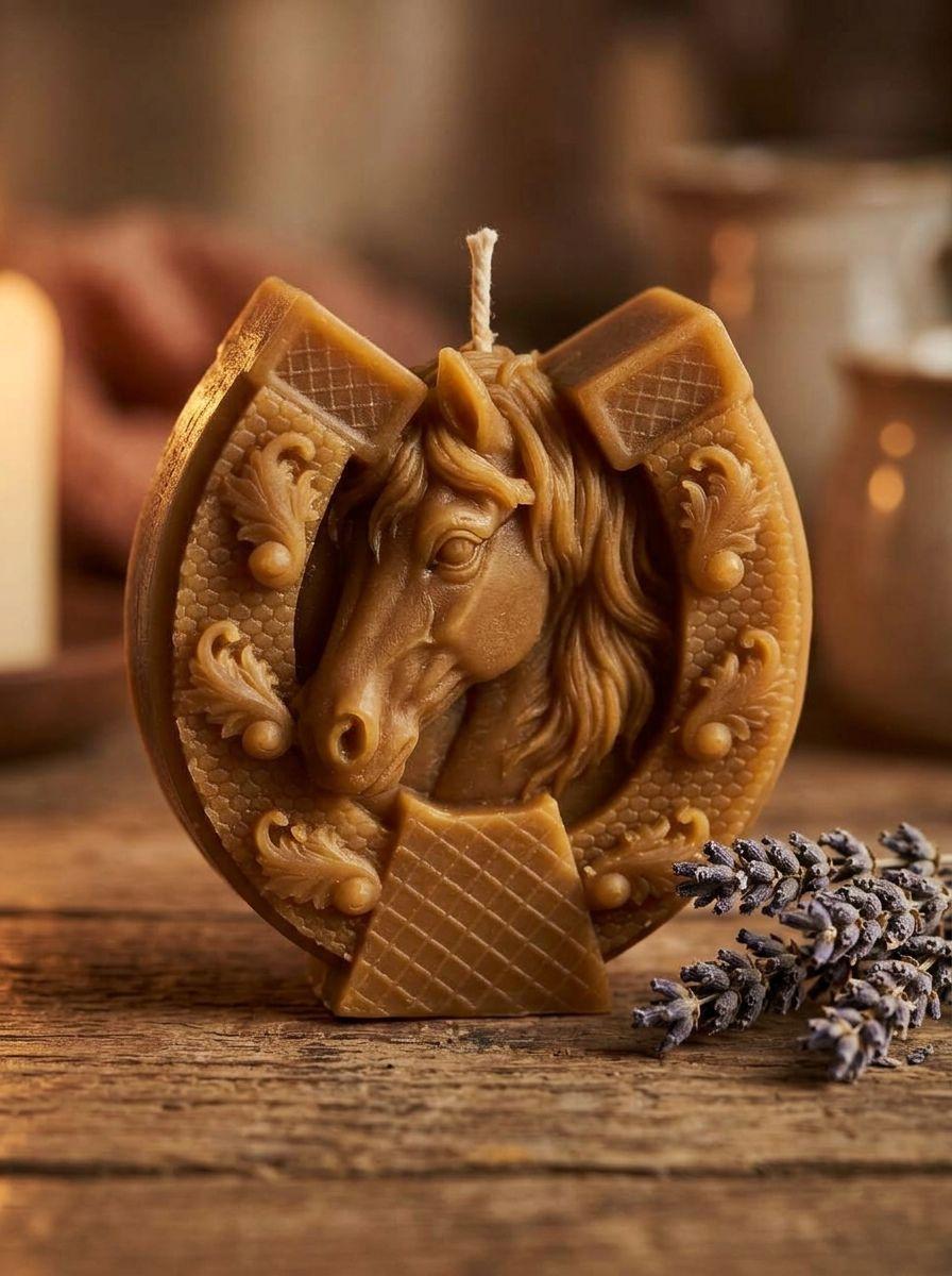 Уникальная свеча в форме подковы, внутри которой — лицо лошади. Символ удачи, силы и связи с башкирскими степями. 🕯️ Натуральный воск 🪔 Ручная работа, каждая уникальна 🐴 Детали морды проработаны вручную 🌿 В комплекте — веточка лаванды Горит мягко, пахнет мёдом, хранит тепло и магию. Идеально: в подарок коневодам, в дом, как оберег.